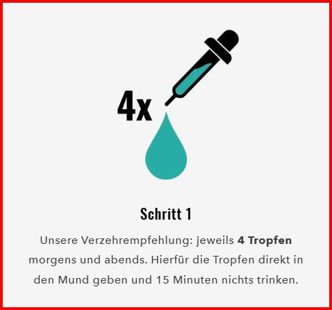 Morgens und abends jeweils 4 Tropfen einnehmen.